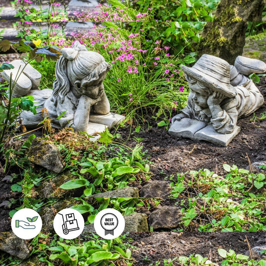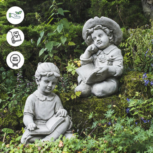 Large Reading Boy and Girl Garden Ornament