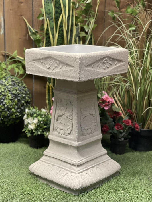 Large Wide Sandstone Birdbath with Square Bowl