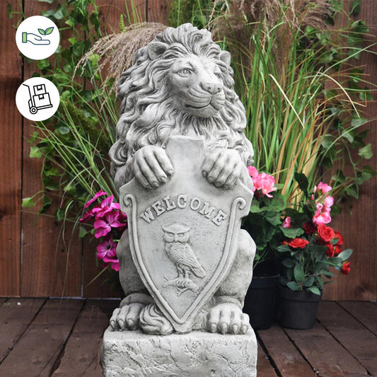 Majestic Gatepost Lion status with Welcome Shield