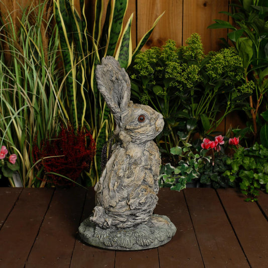 Oak Hare Statue Rustic Stone Cast Garden Ornament