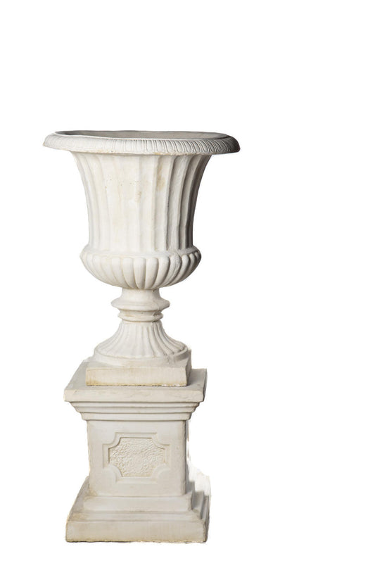 PAIR Giant Fluted White Stone Cast Vases On Plinths 154cm tall!
