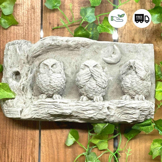 Wise Three Owl Stone Cast Wall Plaque