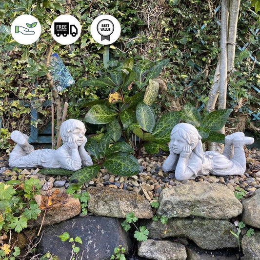 Cheerful Laying Boy and Girl Outdoor Ornament