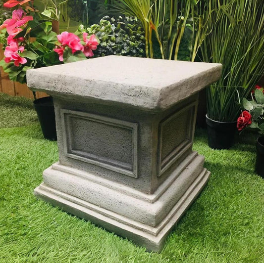 Classic Stone Cast Girl statue with an Urn and Decorative Square Plinth