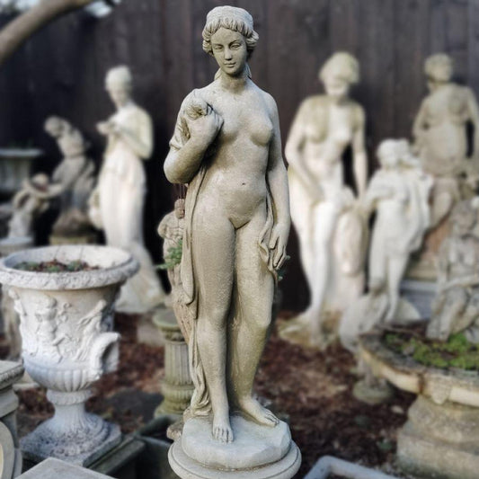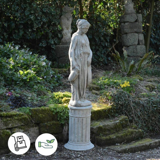 Classic Stone Cast Roman Lady statue with a Jug on Column