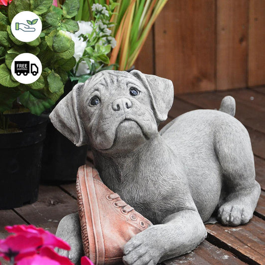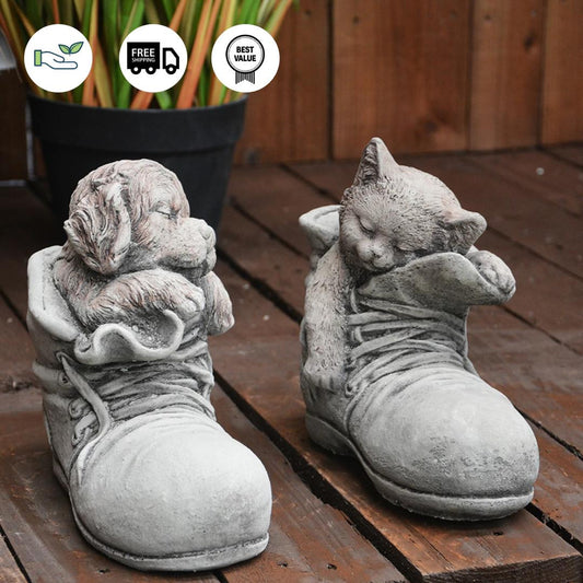 Super cute Pair of Stone cast Cat and Dog in Shoes