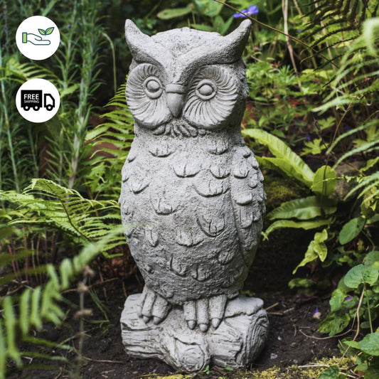 Highly detailed Stone Owl garden ornament Stoneware statue