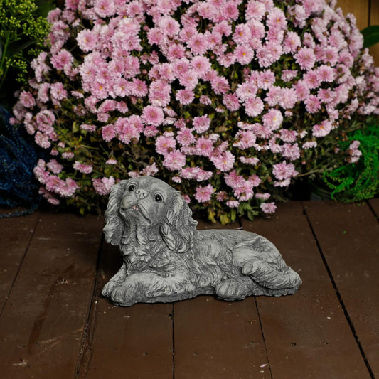 Stone Cast Small Laying King Charles Spaniel Dog Statue Ornament