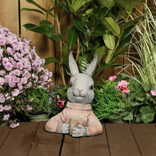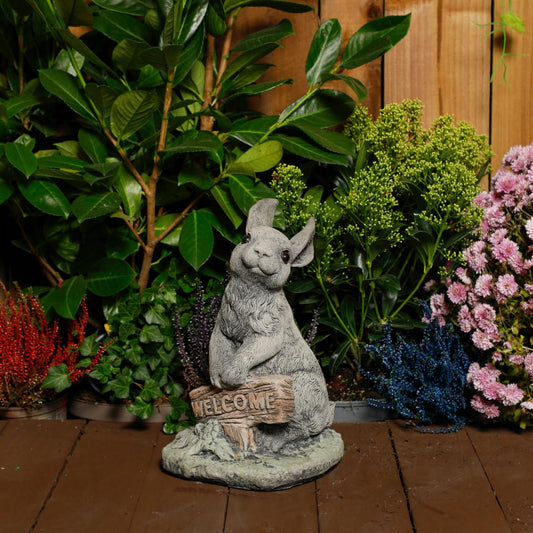 Welcome Bunny Stone Cast Statue Garden Ornament | Cute Rabbit Statue