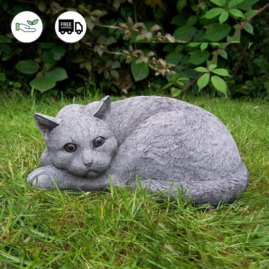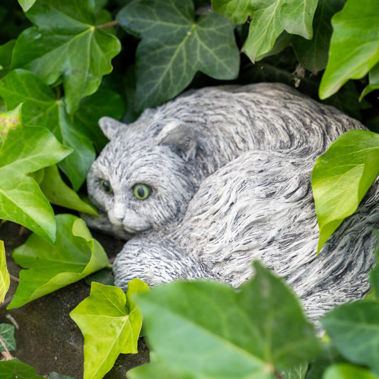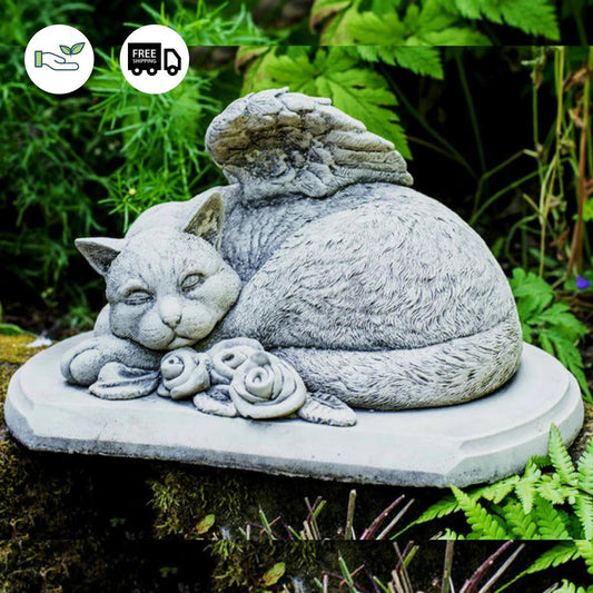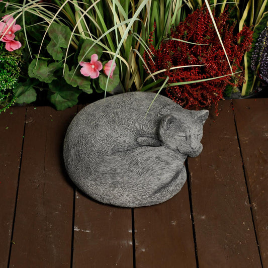 Stone Cast Angel Memorial Cute Peaceful Reclining Cat With Closed Eyes