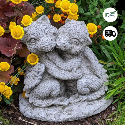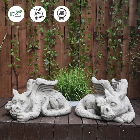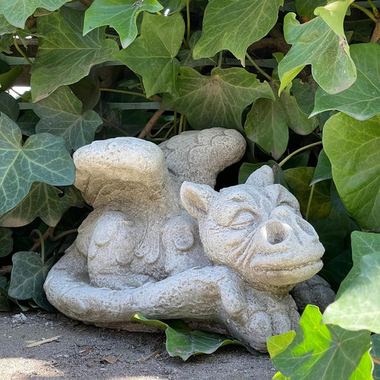 Enchanting Dreaming Dragon Stone Cast Statue Small Outdoor Ornament Garden Sculpture