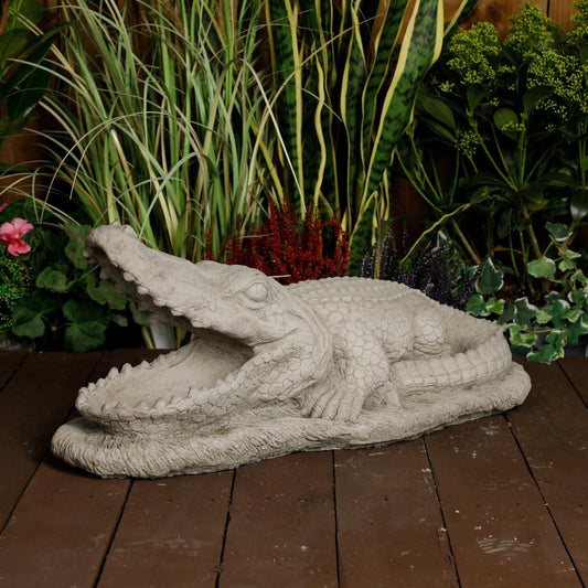 Large Stone Cast Crocodile Ornament with Mouth Open Alligator Statue