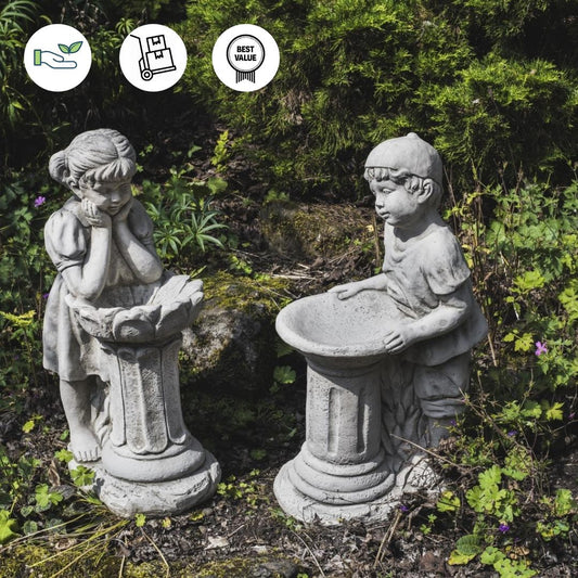 Stone Birdbath Twin Cherub Angel Design 64 cm Tall