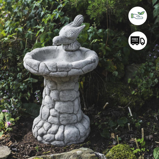 Enchanting Stone Cast Pebble Design Birdbath with Bird