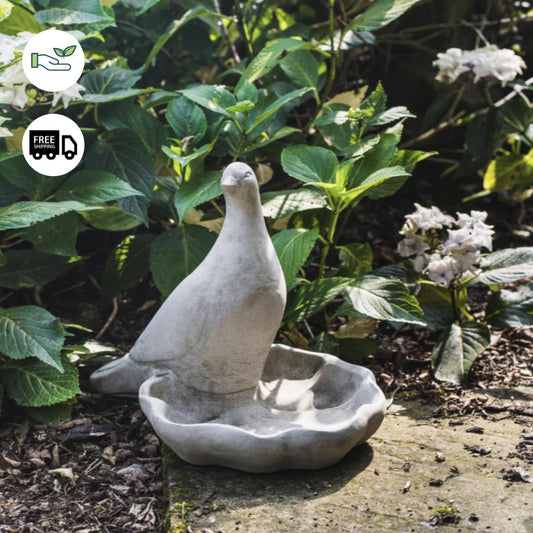 Floor level Birdbath with Perching Pigeon / Bird feeder