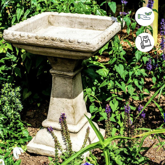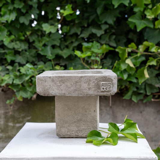 Stone Cast Plain Low Square Birdbath 25 cm Tall