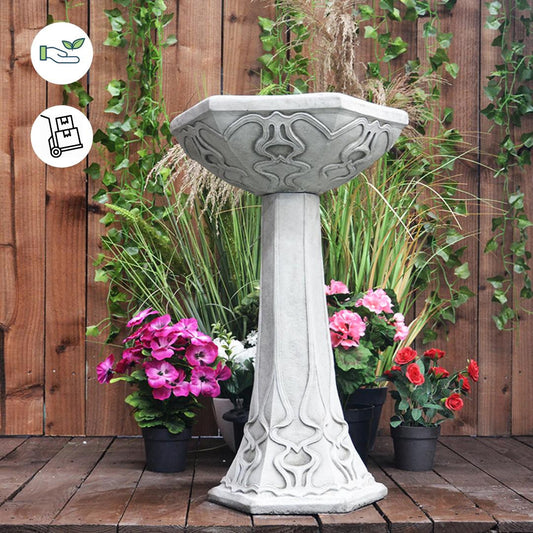 Classic Octagonal Design Stone Cast Garden Birdbath