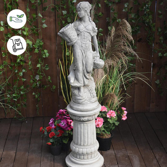 Conservatory Female Statue with Basket on a Fancy Pedestal