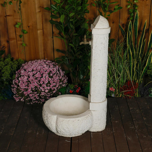 Large White Stone Fountain with carved Base