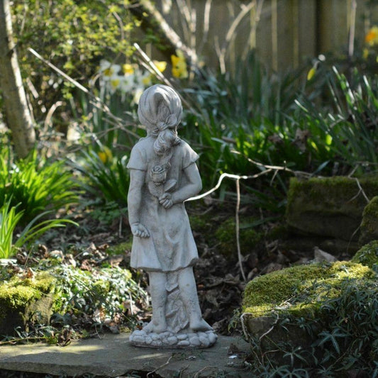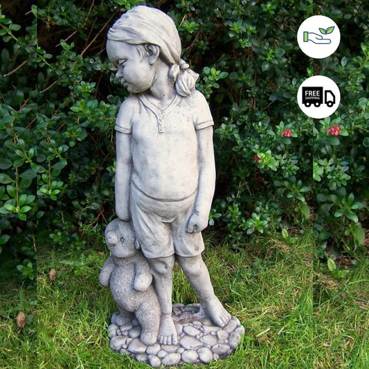 Enchanting Stone Cast Pebble Design Birdbath with Bird