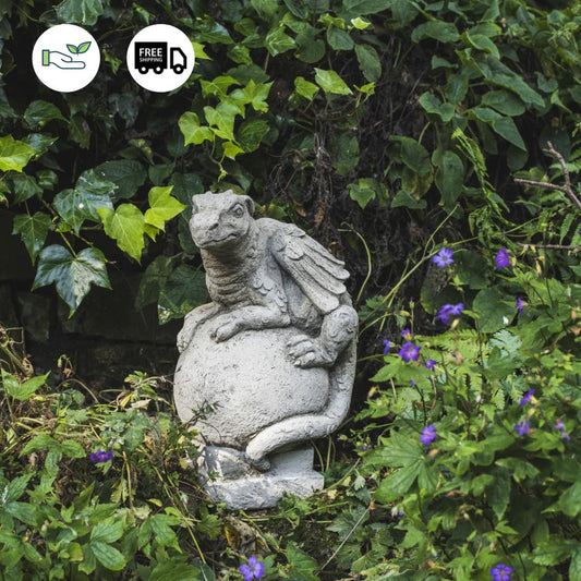 Solid Stone Cast 'Dragon on Ball' Garden Ornament