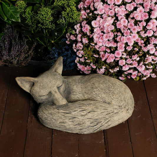 Tranquil Large Cast Stone Sleeping Fox Garden Statue Garden Sculpture Ornament