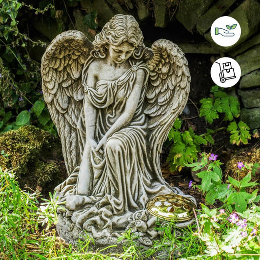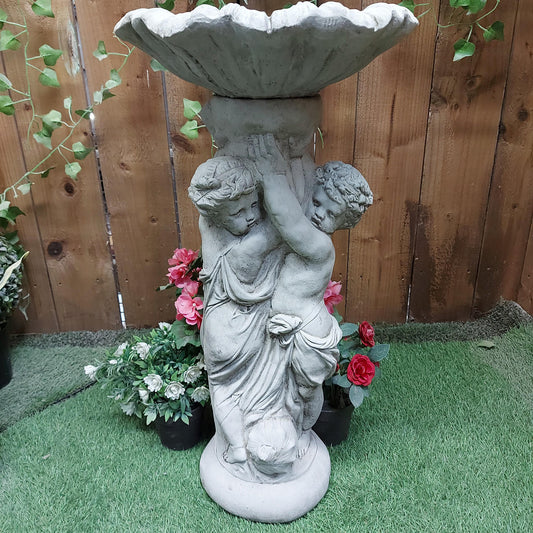 Stone Birdbath Twin Cherub Angel Design 64 cm Tall