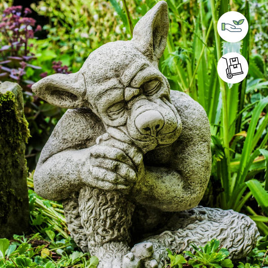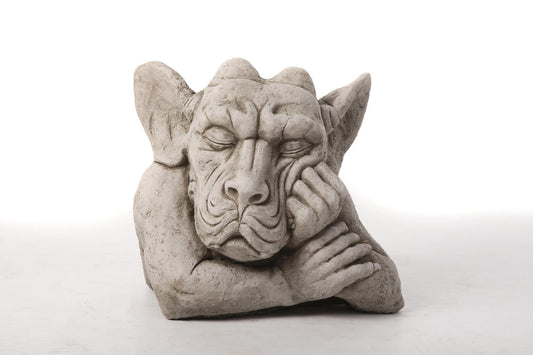 Solid cast Stone Dog Gargoyle In Sleepy Pose