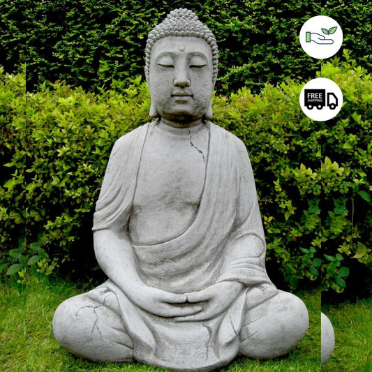 Medium Stone Cast Buddha Statue with Traditional Hat