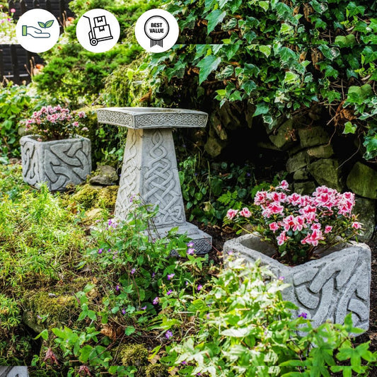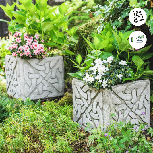 Pair of Stone Cast Large Celtic Garden Planter Pots