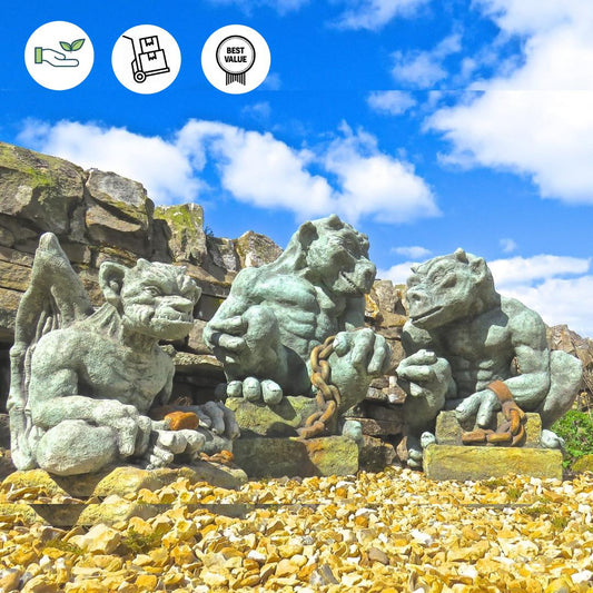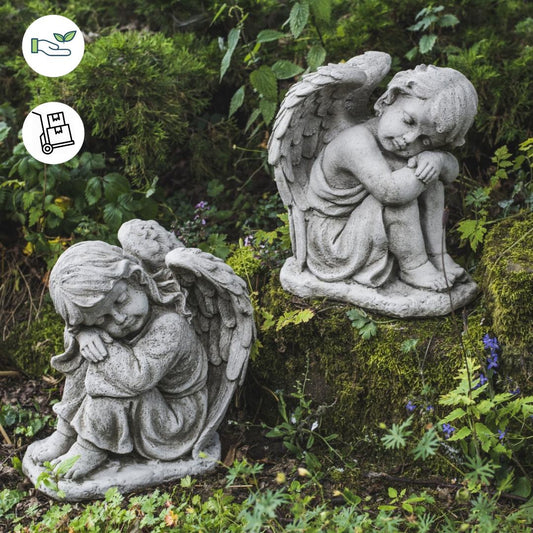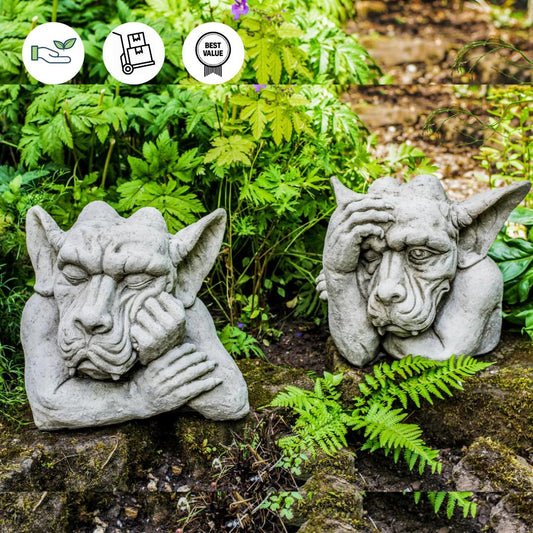 Pair of Large Hand on Head Sleepy Gargoyle Garden Statues