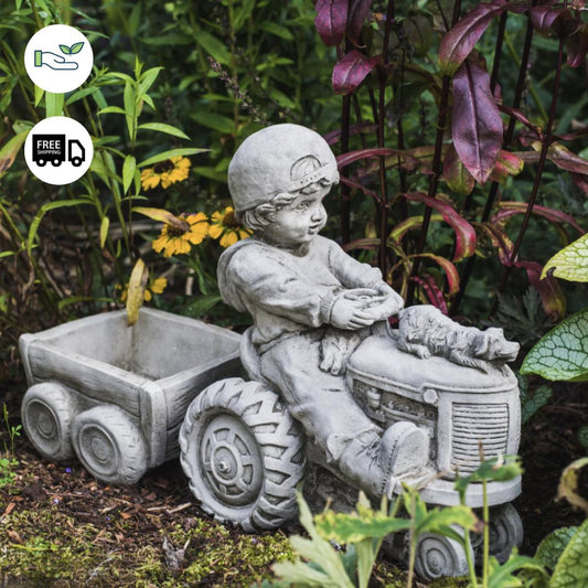 Boy on Tractor with Small Planter Trailer