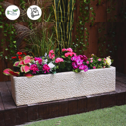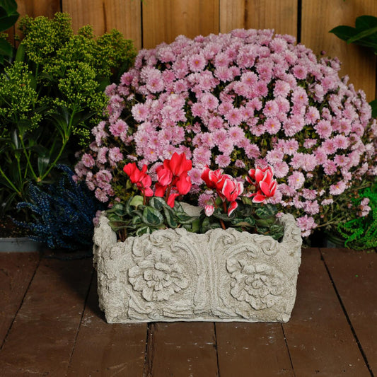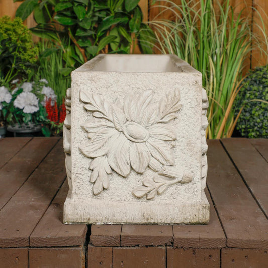 Large Wildflower design White Stone Planter Trough