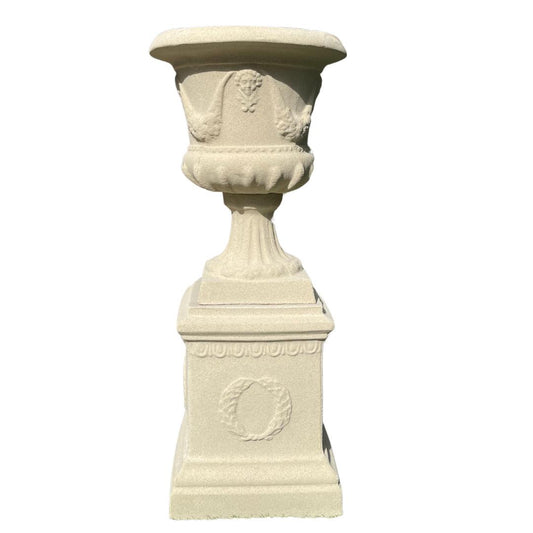 Sandstone Royale Urn On Round Plinth
