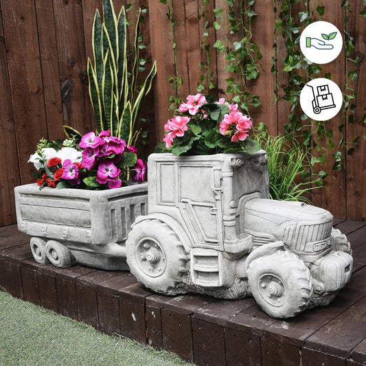 Large Tractor and Trailer Garden Planter Set