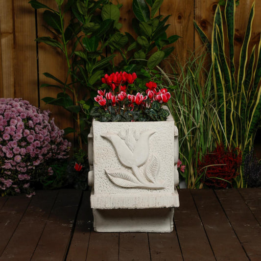 Medium size Tulip design White Stone Planter Trough