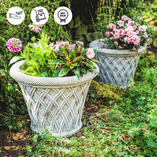Pair of Large Wicker pattern Stone Plant pot