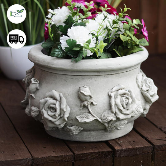 'Rose Pot' Stone Cast Garden Plant Pot