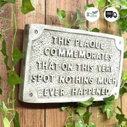 Stone cast Humorous Wall Sign "Nothing happens in this spot"