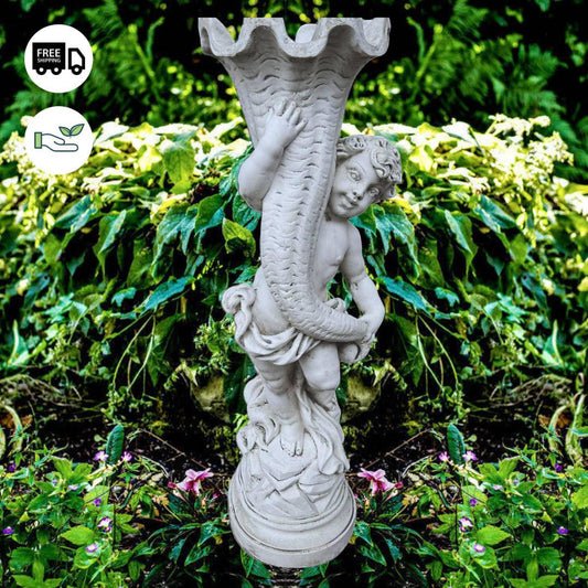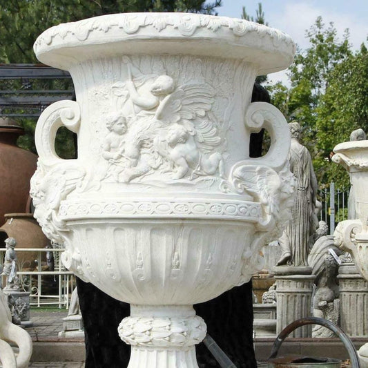 Grand & Ornate Stone Cast Cherub Planter (Lid not Included)