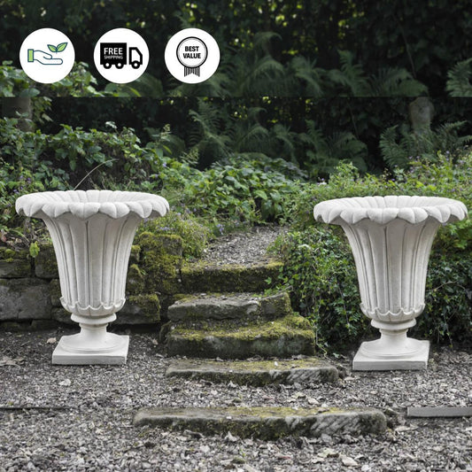 Pair of Extra Large White/cream Ancient Greek Style Fluted Vase Planter Urn