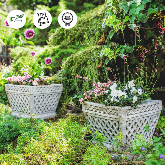 Pair of Stone Cast Large Celtic Garden Planter Pots