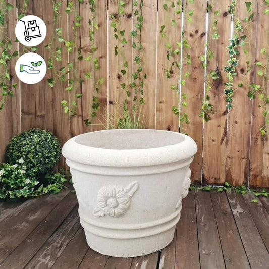 Large Flower pattern Sandstone Garden Urn