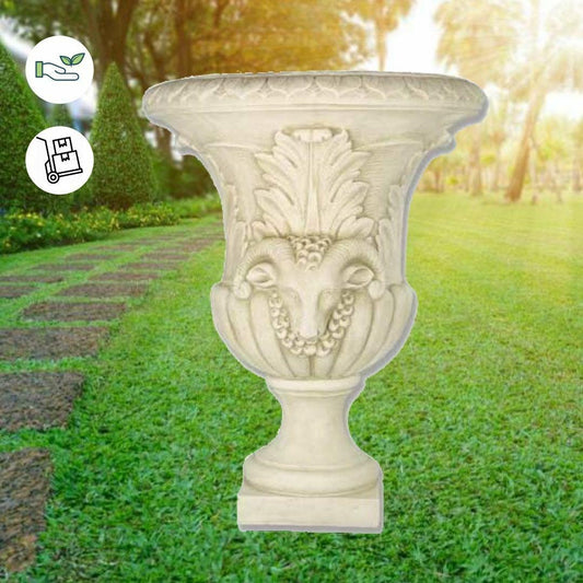Large Stone cast Fluted Urn with Ram head