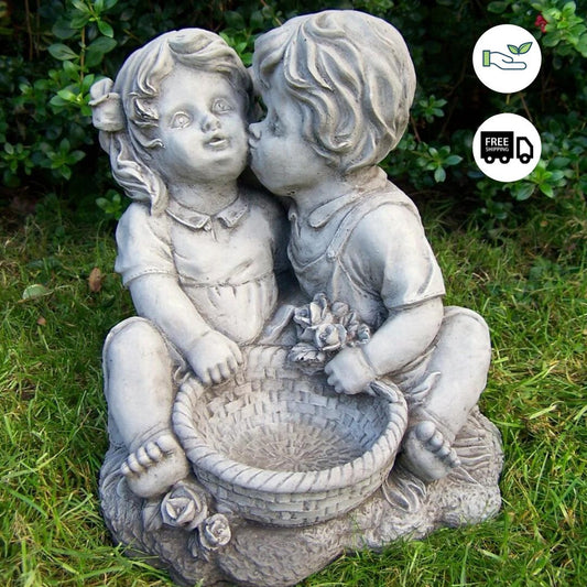 Charming Kissing Children with Flowerpot