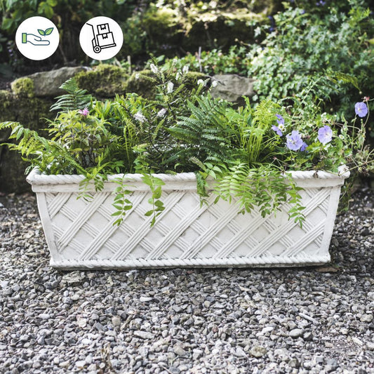 Large Wicker Design White Stone Trough