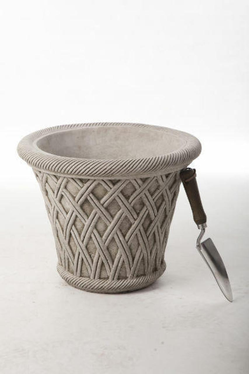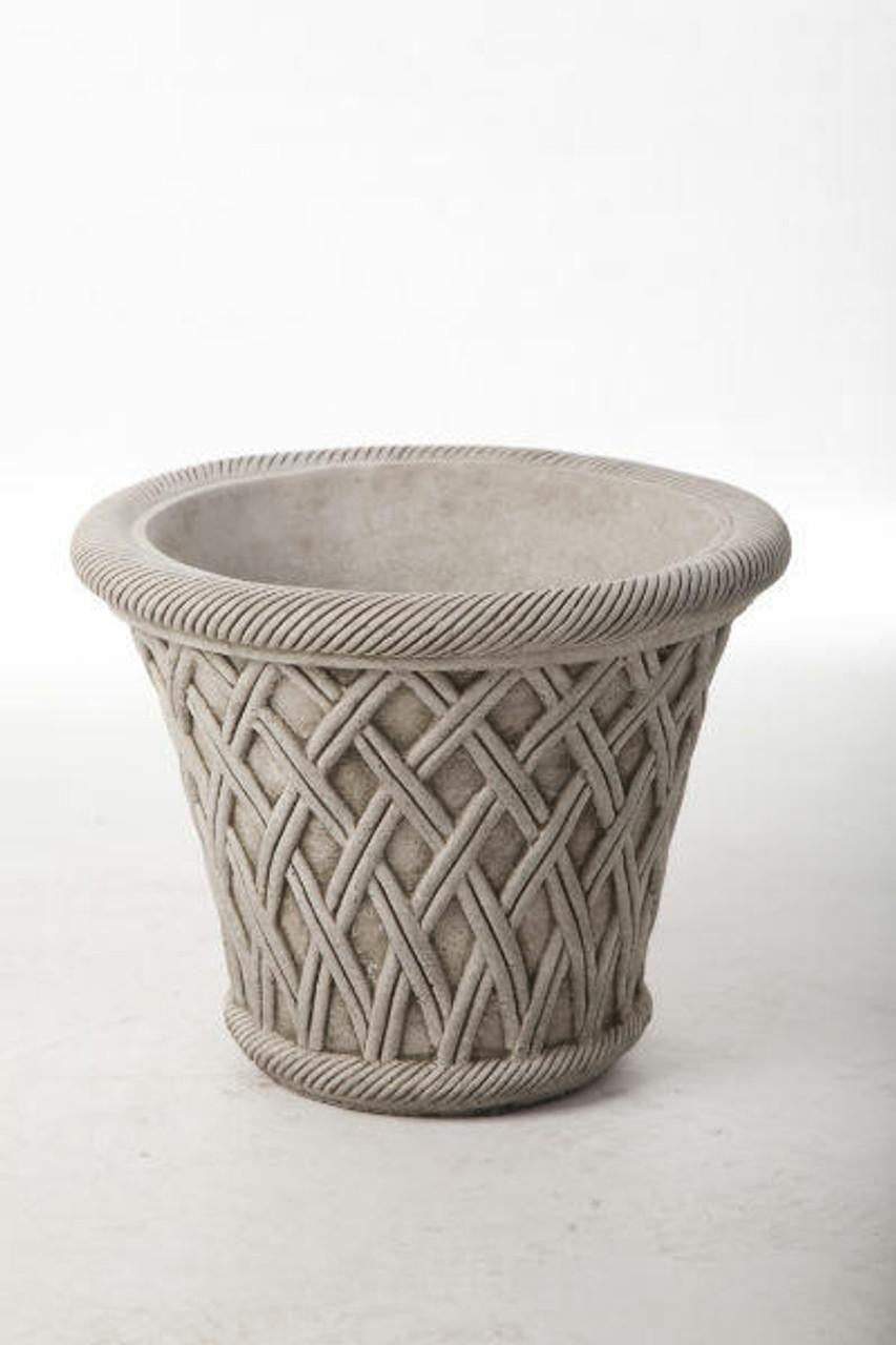 Large Wicker Pattern Stone Plant Pot